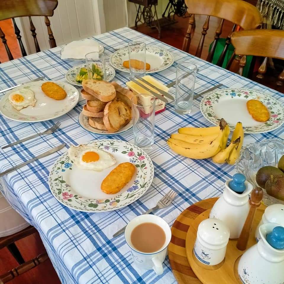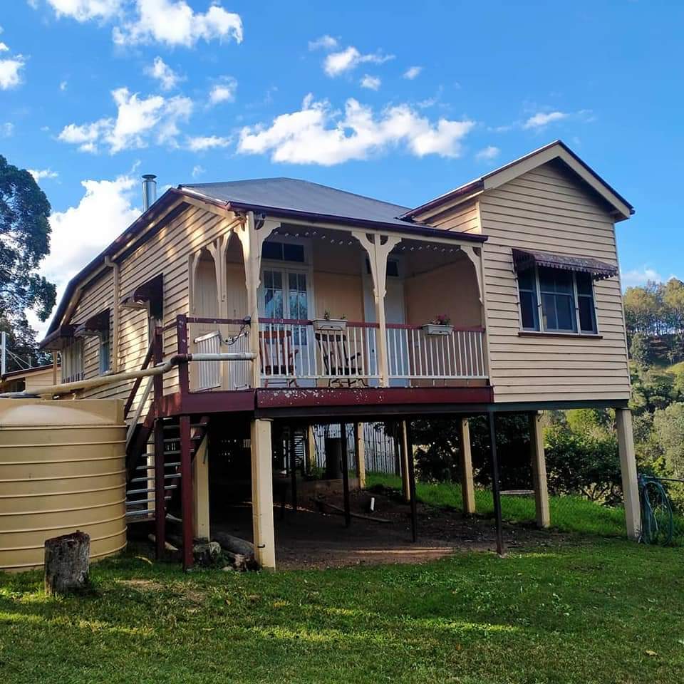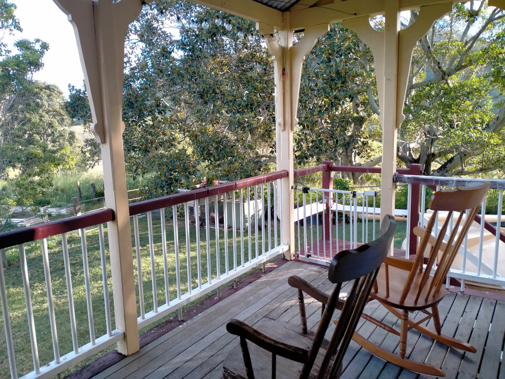 Just 10 minutes from Dayboro, our accommodation at Laceys Creek Homestead & Vineyard was found on Airbnb. Situated at the top of an 80acre working farm, this beautifully restored 1920s Queensland farmhouse has 12-foot ceilings, stained glass casement windows, a wood fire heater, and timber floors throughout. Careful attention has been made to restore all of the original hardware and windows so the house feels like it would have 100 years ago — very cool! My room was adorable yet a little creepy with a tiny old-fashioned high chair in there.